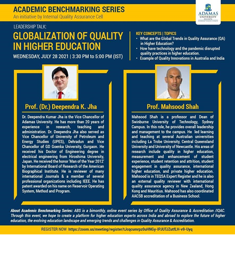 Academic Benchmarking Series(ABS) – NEP 2020: “Opportunities and Challenges of Internationalizing Higher Education in Postcolonial India” BY Prof. (Dr.) Mousumi Mukherjee Read more